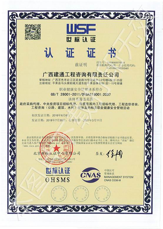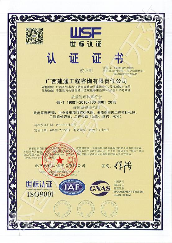 廣西建通工程咨詢有限責(zé)任公司三大管理體系認(rèn)證證書(shū)
