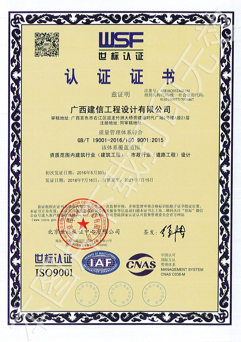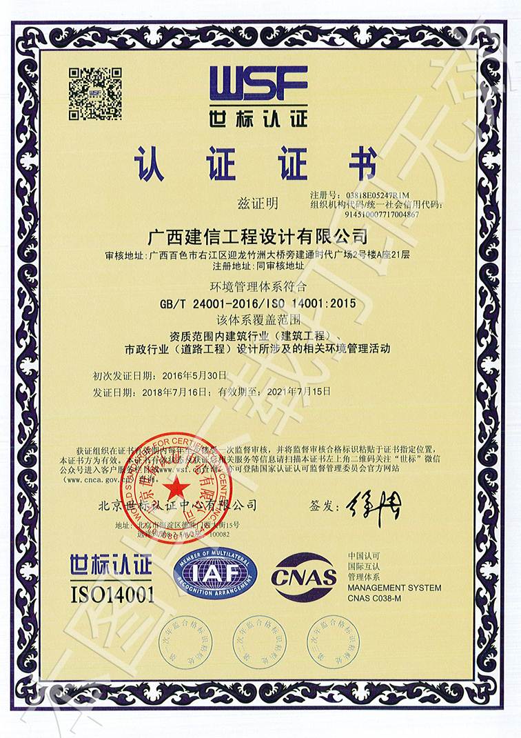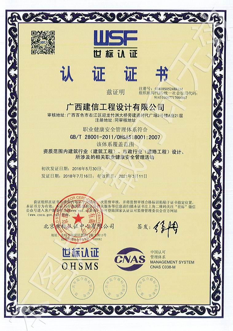 廣西建信工程設(shè)計(jì)有限公司三大管理體系認(rèn)證證書(shū)